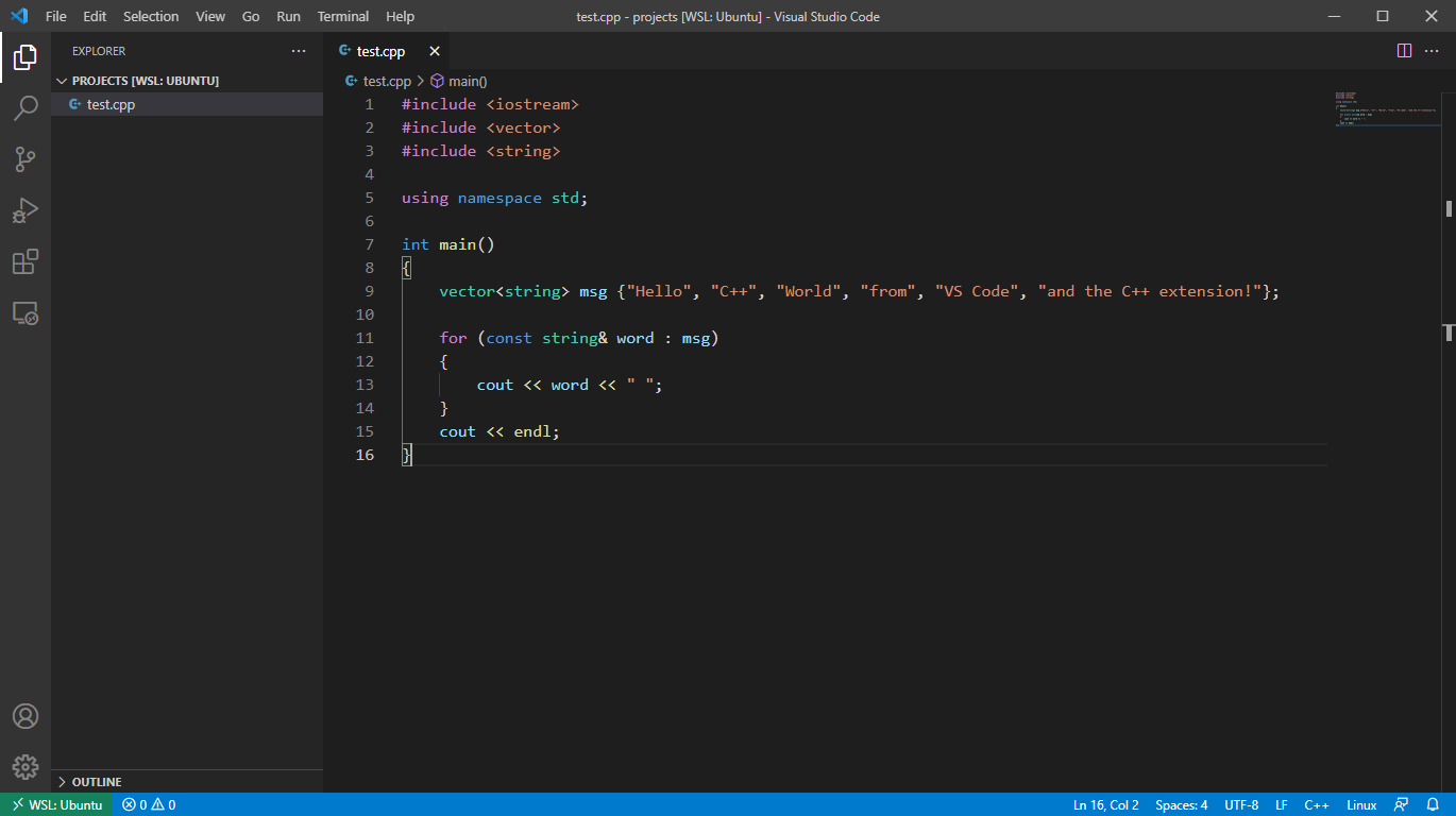 Hello C++ World from VS Code and the C++ extension!